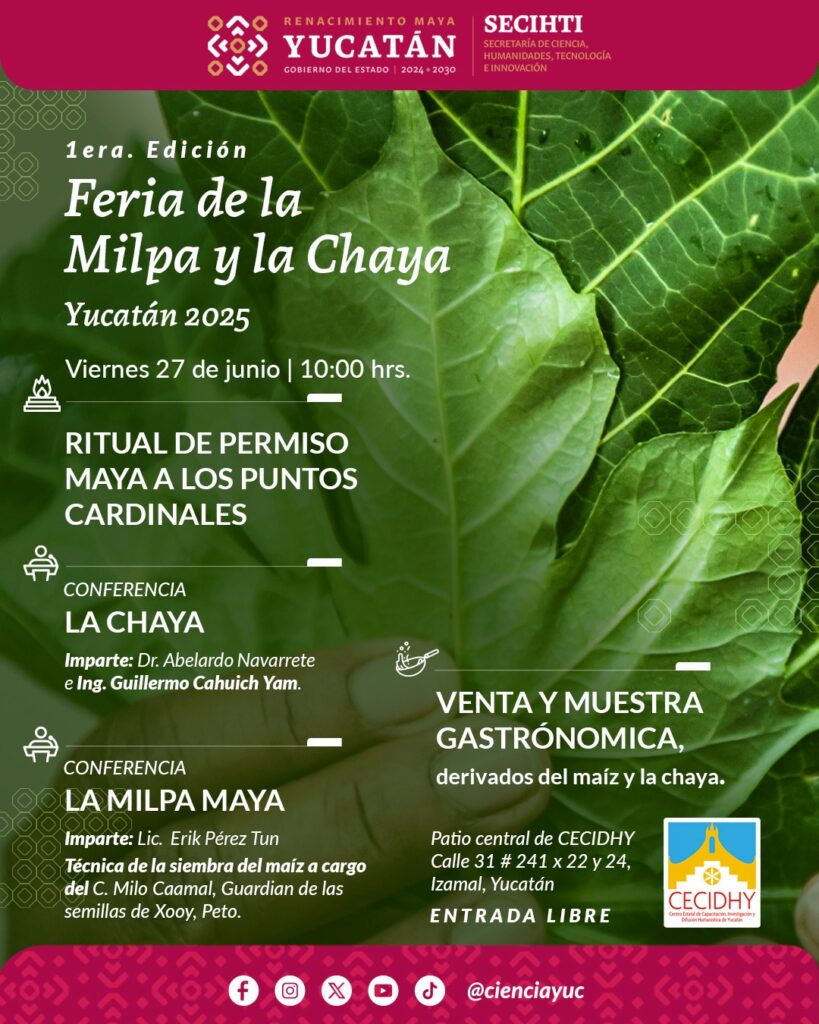 Si quieres saber más de este tema, te invitamos a nuestra Primera Feria de la Milpa y la Chaya este viernes 27 en el Cecidhy de #Izamal