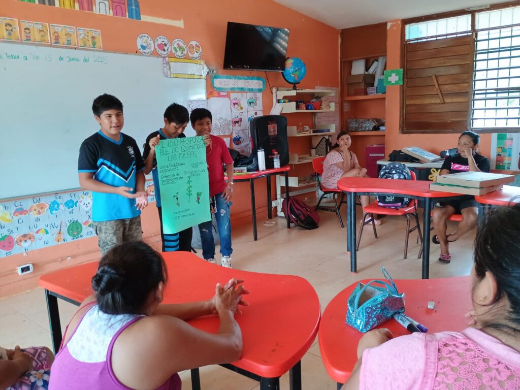 Como resultado notable, las y los participantes propusieron diversas formas de compartir sus ideas con su comunidad, entre ellas carteles, un recetario, videos para redes sociales, un juego didáctico y la lectura de un cuento en voz alta. El uso de carteles fue la propuesta más recurrente, al considerar que facilita el diálogo y la resolución de dudas, especialmente en Xkobenhaltún y San Agustín.