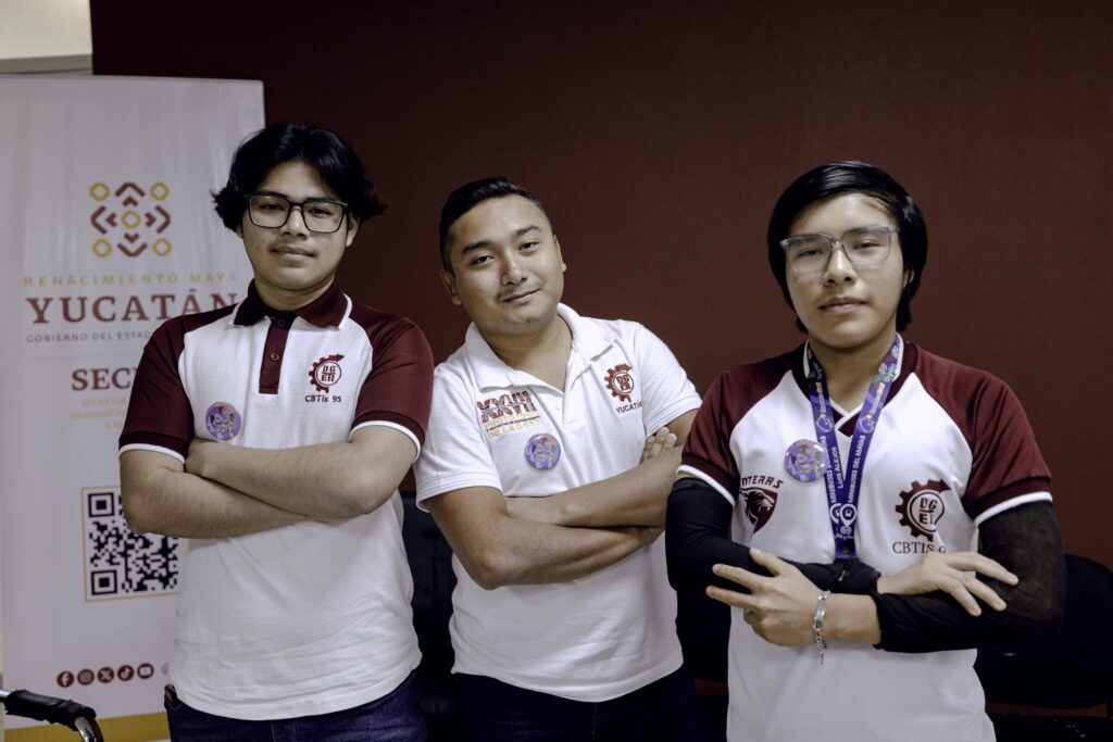 En el nivel de educación media superior, tres proyectos avanzaron a la final. Uno de ellos es “Ko’one’ex baaxal: un juego para promover el aprendizaje inclusivo”, de Luis Alejos Martínez, Víctor Pacheco y Diego Bautista Tec, del Cbtis 95, cuyo objetivo es derribar barreras de comunicación mediante estrategias lúdicas apoyadas en un tablero físico, una aplicación y una página web.